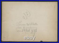 Important 1908 photograph of the race track at Savannah for the first ever American Grand Prix. The photo is an important piece of auto racing history as this image was taken at the first ever Grand Prix race ever held in American history! Taken by the famous Spooner and Wells studio of New York, Karl Spooner was at the Savannah race and took all the photos of the now iconic race and has handwritten his company name and address on the back! An important piece of racing history that is from the absolute genesis of Formula One and offered here for the first time ever, the photo shows the cars and the track from an aerial perspective! The photo has some wear and is from the actual Spooner and Wells company album displayed at their showroom in New York City. This is the only example of this photograph known to exist and it is being offered here for the first time ever!