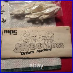 Vintage MPC original 1976 Issue Welcome Back Kotter, Sweat Hogs Dream Machine Pontiac Grand Prix 1/25 Scale Model kit in open box. The kit no is 1-0641. The model has been messed with and most parts removed from the parts trees but appears complete except for the rear windshield.